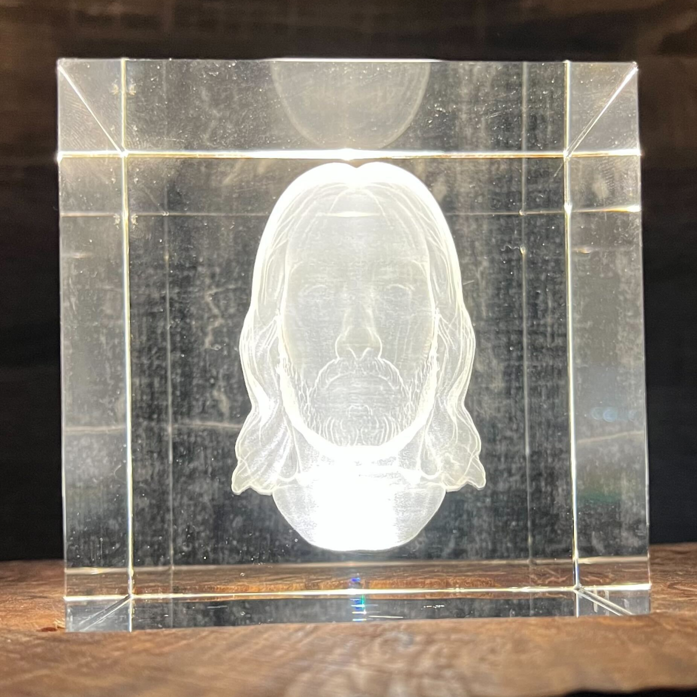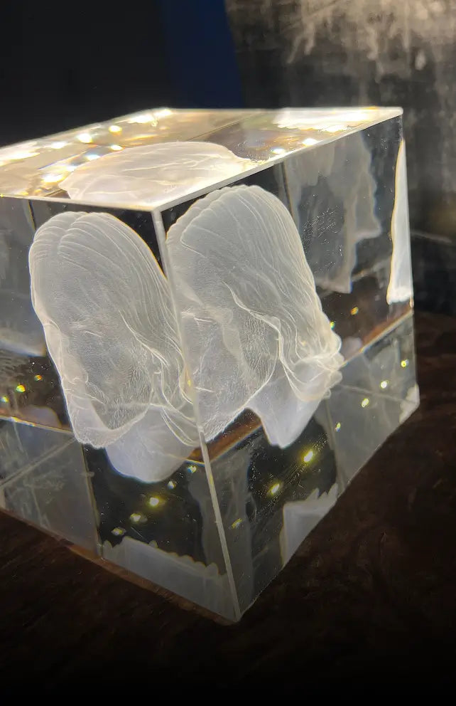 A limited edition crystal piece created from the Shroud of Turin — rendered once, unchanged, and preserved in glass.